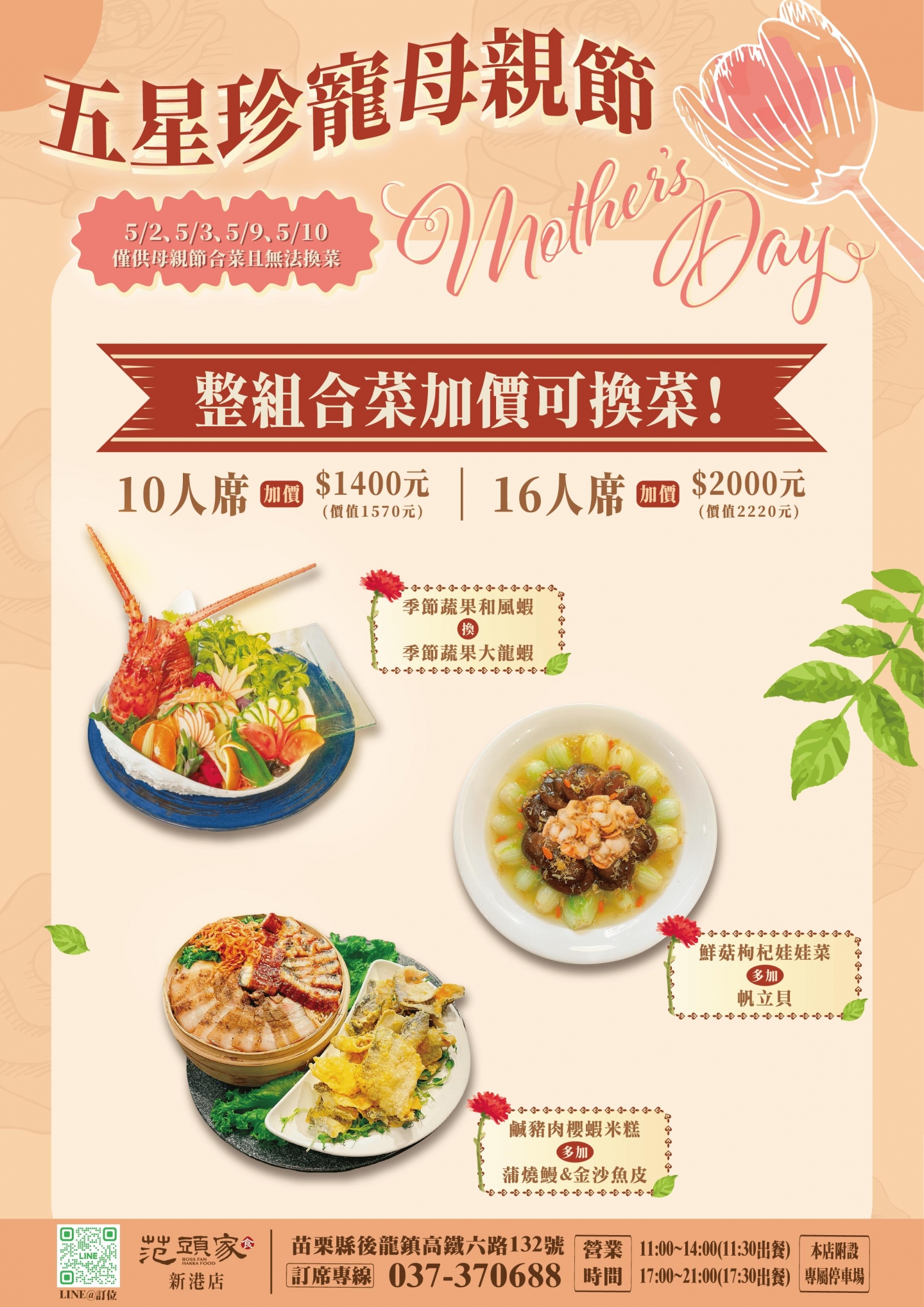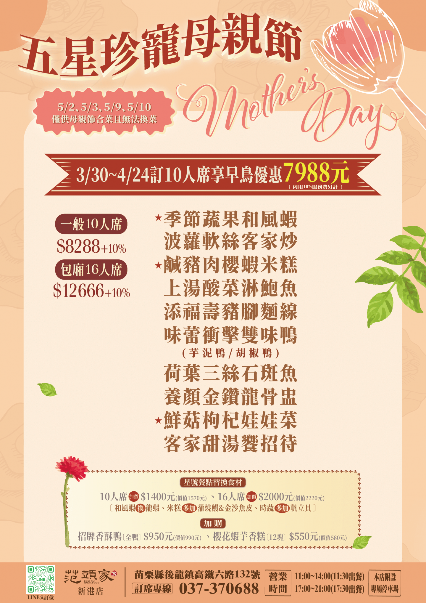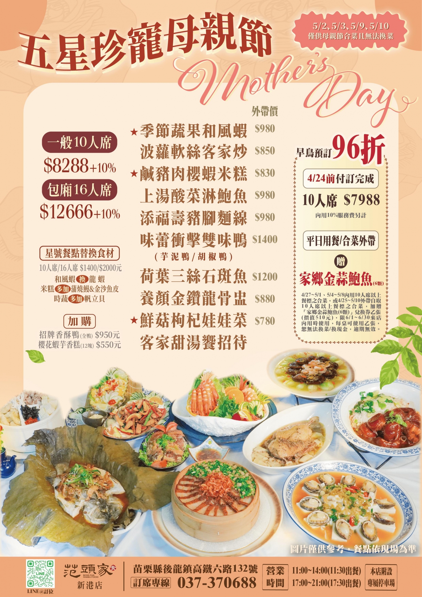 🌸范頭家『五星珍寵母親節合菜』開始訂位囉🌸