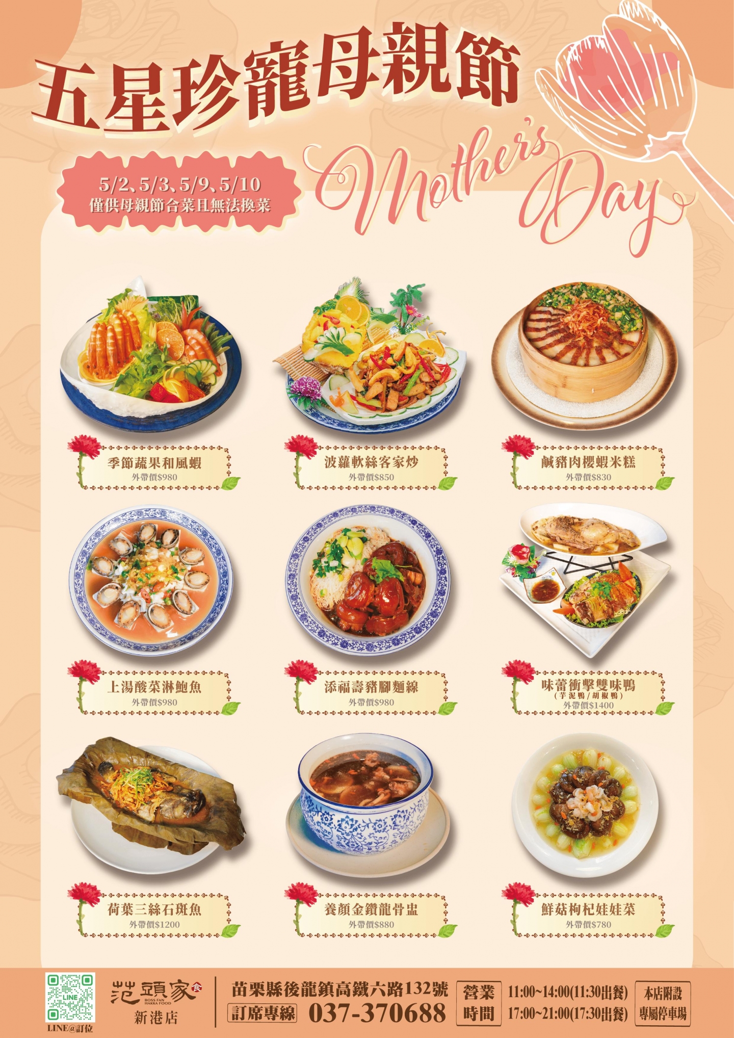 🌸范頭家『五星珍寵母親節合菜』開始訂位囉🌸